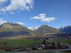 Der IC 2085 brachte mich pünktlich nach Oberstdorf. Die Zugfahrt war sehr angenehm, im gesamten Wagen gab es nur eine handvoll weiterer Reisender. Auf der Zugfahrt habe ich es genossen die vorbeiziehende Landschaft zu betrachten und Musik zu hören. Außerdem habe ich etwas gelesen und natürlich meine belegten Brötchen gegessen. Nur ein Kaffee fehlte zur perfekten Zugfahrt, aber ein gastronomisches Angebot hätte sich für diese Zugfahrt wirklich nicht gelohnt.
