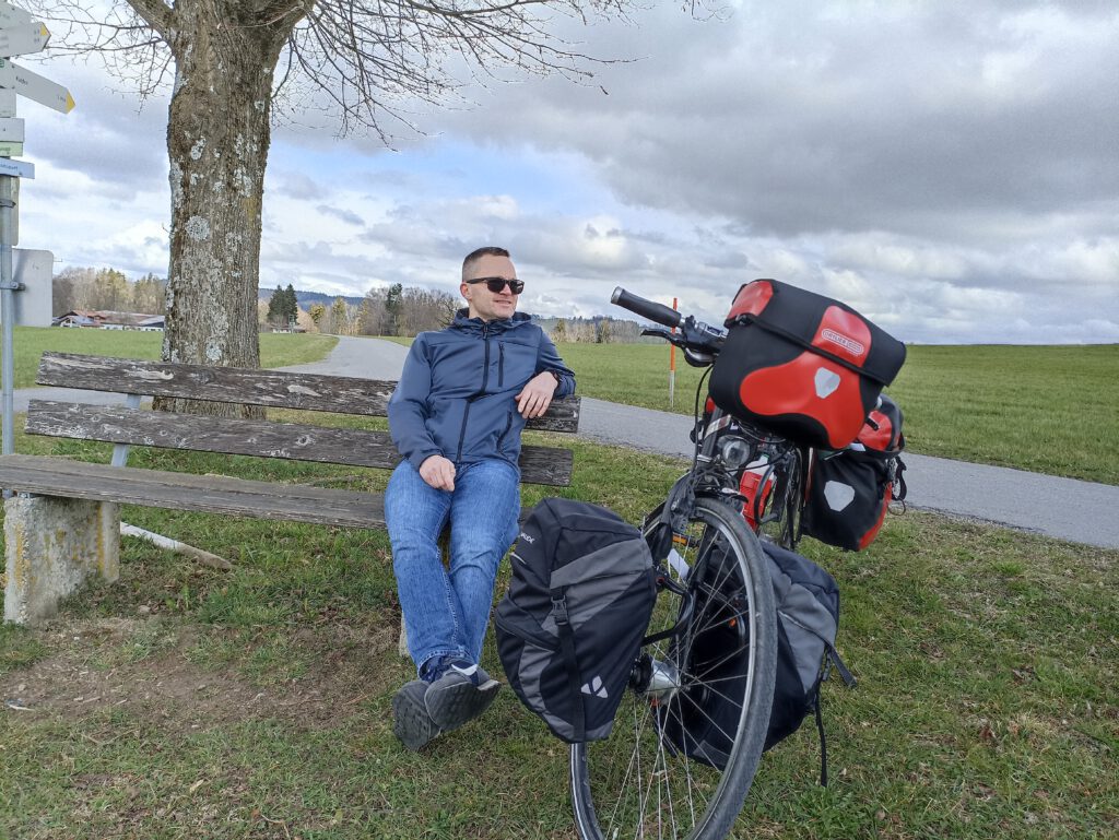 Die heutige Etappe verlief reibungslos. Perfekte Wetterbedingungen haben die tolle Strecke zum Vergnügen gemacht. Okay, teilweise hatte ich etwas Gegenwind und musste einige steile Passagen mein Fahrrad schieben, aber das gehört eben dazu. Die Streckenführung verläuft weiterhin meist in unmittelbarer Nähe zur Iller und wieder auf gut befahrbaren Wegen. Einkehrmöglichkeiten oder eine Möglichkeit einen frischen Kaffee zu trinken waren rar so dass ich meine Pausen auf Bänken in der schönen Landschaft genoss.